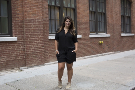 At another show I highlighted accessories, mixing a classic Chanel bag with my favorite trendy new Kendall Jenner-inspired sneakers. My go-to Eileen Fisher romper was the perfect black backdrop for a look that screamed either Chic Fashion Person or Rich Nurse (you tell me!).