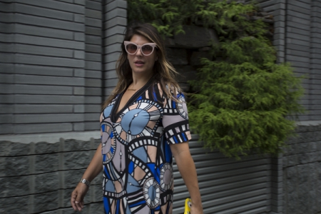For the Karen Walker show, I went with one of her new midi dresses because it was cool (literally and figuratively), statement-y and I’m obsessed with the pattern! I feel amazing in this dress and can tell I’m about to wear it too much.